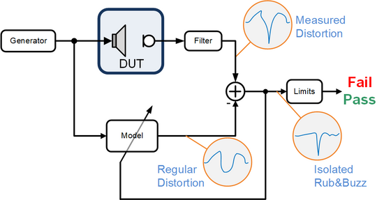 Detecting defects (aka Rub & Buzz) through acoustic symptoms like abnormal noise and impulsive distortion is one of the key targets in End-of-Line testing of audio devices and is traditionally performed by human listeners. Performing listening tests to assess loudspeaker quality in the production line is a major issue due to their cost and subjective nature, making the results unreliable. In addition, some barely audible loudspeaker defects may worsen over time. Some defects have random symptoms that are difficult to identify, such as loose particles rattling inside the system under test. Furthermore, the noise generated during the production process can sometimes mask the symptoms of a defect. Finally, the conditions (e.g., orientation, acoustical load) in the production line are very different to the final application and the end user may use more critical stimuli for perceptual evaluation.