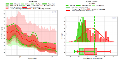 By using this method, if both the calculated equivalent disturbance and the test microphone signal exceed the limit, the cause is identified as "Noise" and the final test result is displayed accordingly. On the other hand, if only the test microphone signal exceeds the limit and the equivalent disturbance does not, then the DUT is considered defective and the result is "Fail".