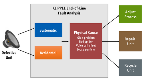 For manufacturers of audio equipment, such as speaker components, speaker units, and speaker systems, it is necessary to test the performance and sound quality of the final product in mass production to control the quality. EoL testing is much more than separating good from bad units. It is also about using the information contained in the defects to improve the design and optimize the production processes. That requires a detailed, sophisticated analysis that must be done using the latest insights in electro-acoustic, including nonlinear modeling, mechanical models, FEM, simulation and many more.