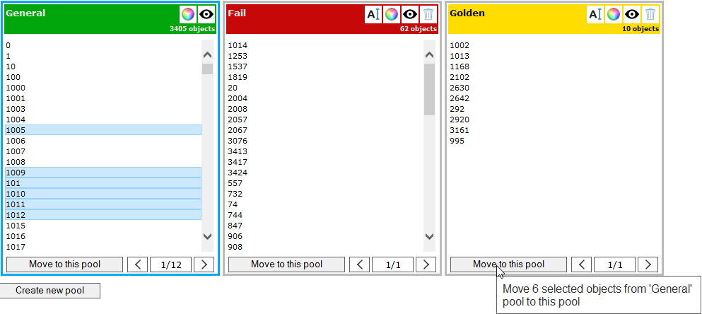 A major feature of the STAT module is that DUT data sets can be easily organized into pools (e.g., “good,” “bad,” “borderline”) manually or based on user-defined thresholds (limits).