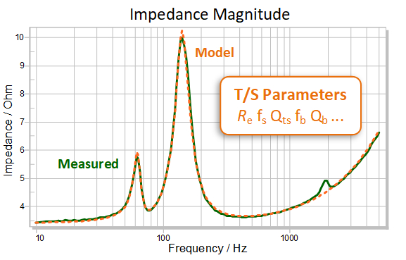 The following T/S parameters can be determined based on fitting the electrical input impedance: