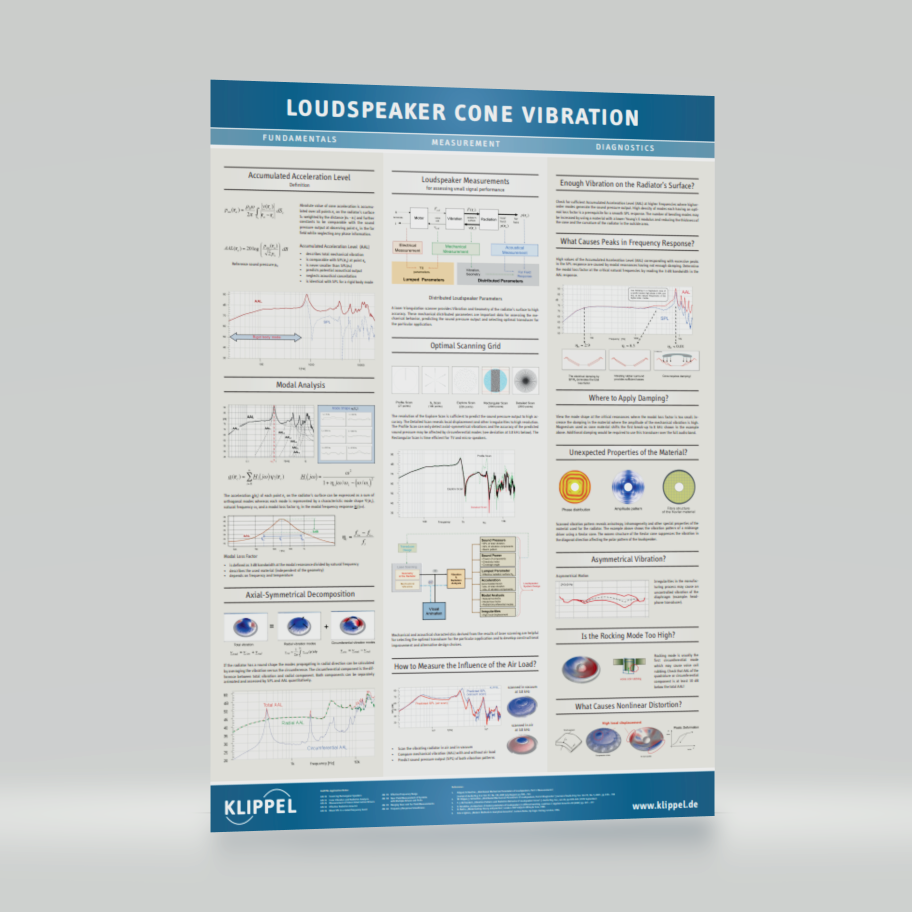 The third poster illustrates some important topics about the fundamentals and measurement methods of loudspeaker cone vibration. Furthermore, it addresses relevant questions about the diagnostics, for example: