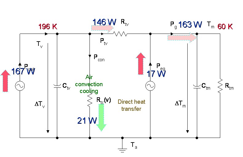 high thermal capacities Ctv and Ctm which determine the time constants of the heating process