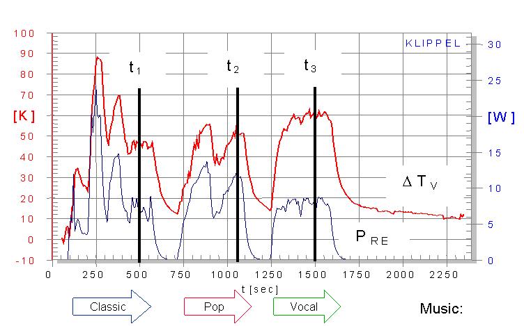 DIS provides a special measurement (pilot tone at 375 / 750 / 2250 Hz) which estimates the voice coil temperature at sufficient accuracy to protect the transducer under test. | |