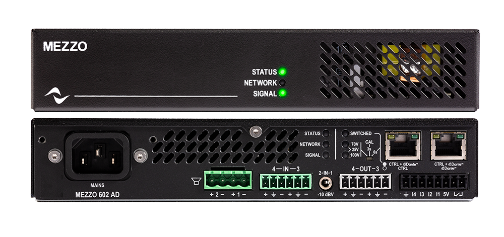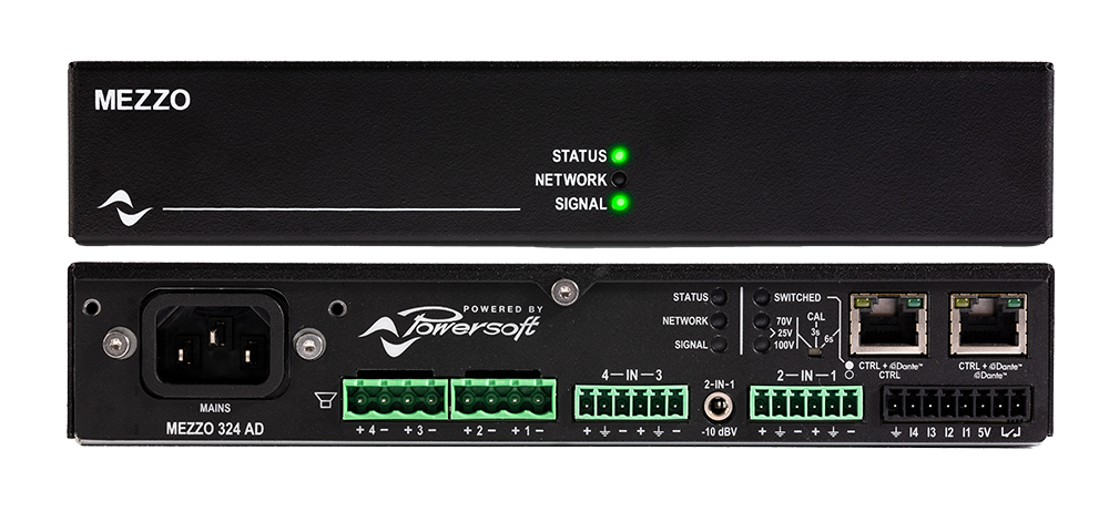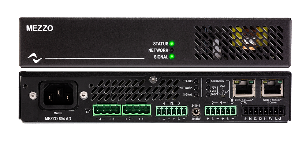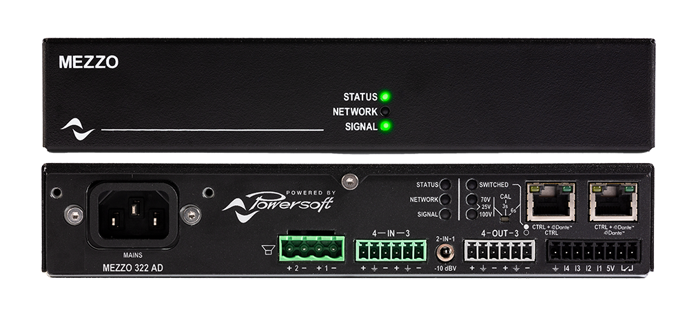 The below listed 4-channel amplifiers (MEZZO 604 AD and MEZZO 324 AD) are recommended due to their flexibility and cost-efficiency and the 2-channel amplifiers (MEZZO 602 AD and MEZZO 322 AD) could optionally be used for small setups.
