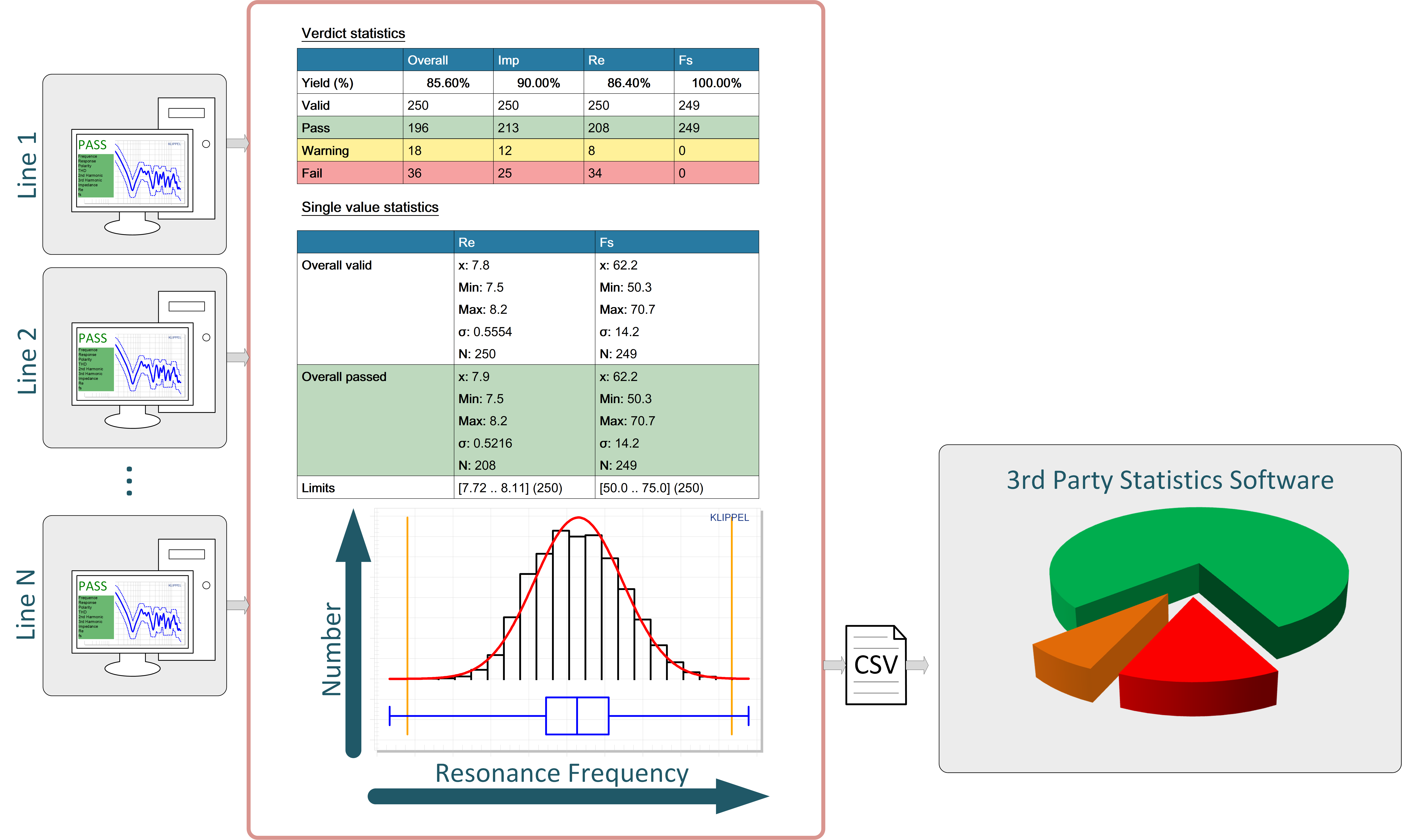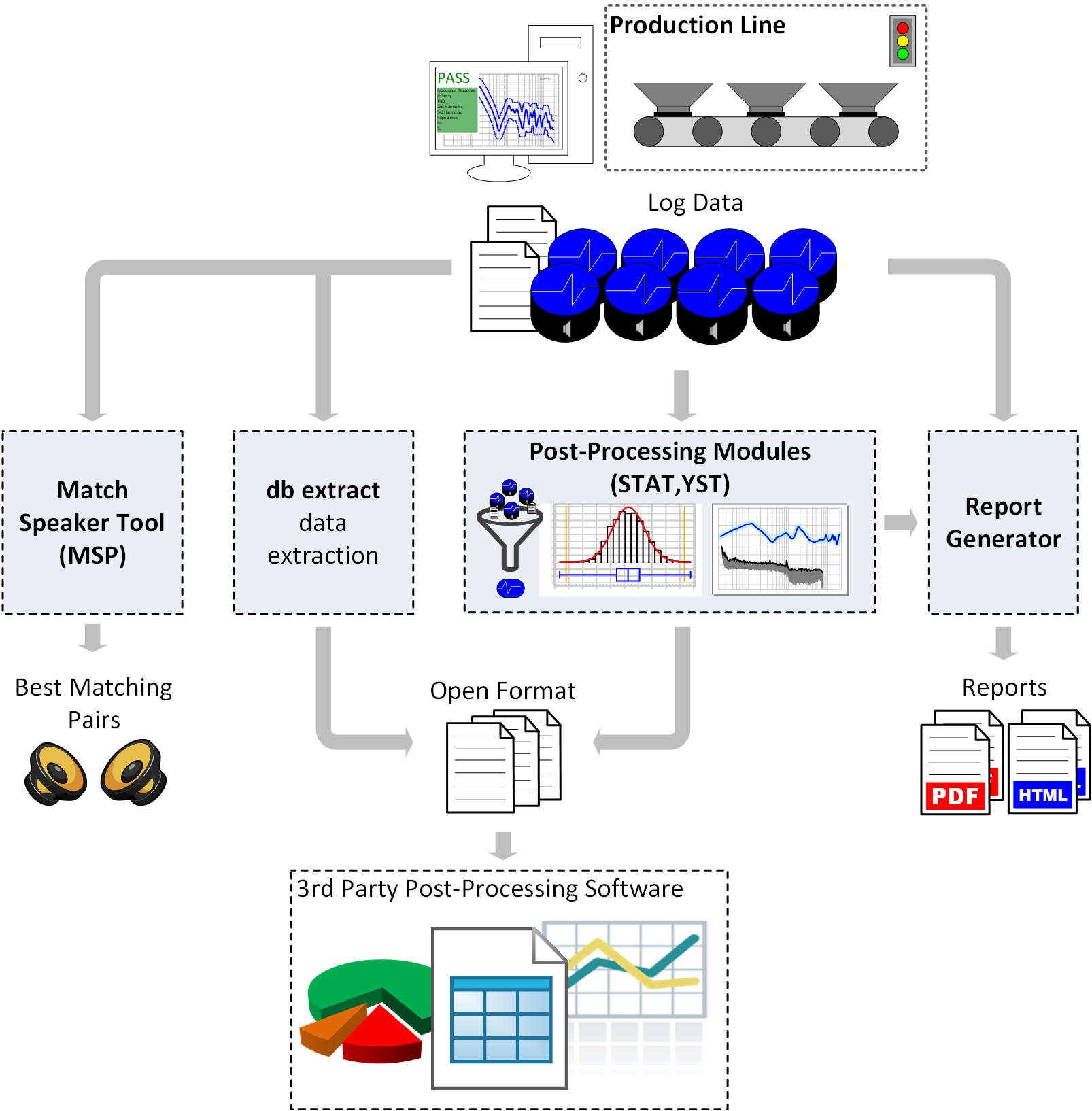 Klippel provides several free tools and add-on modules for data conversion, post-processing and statistical analysis of logged test data: