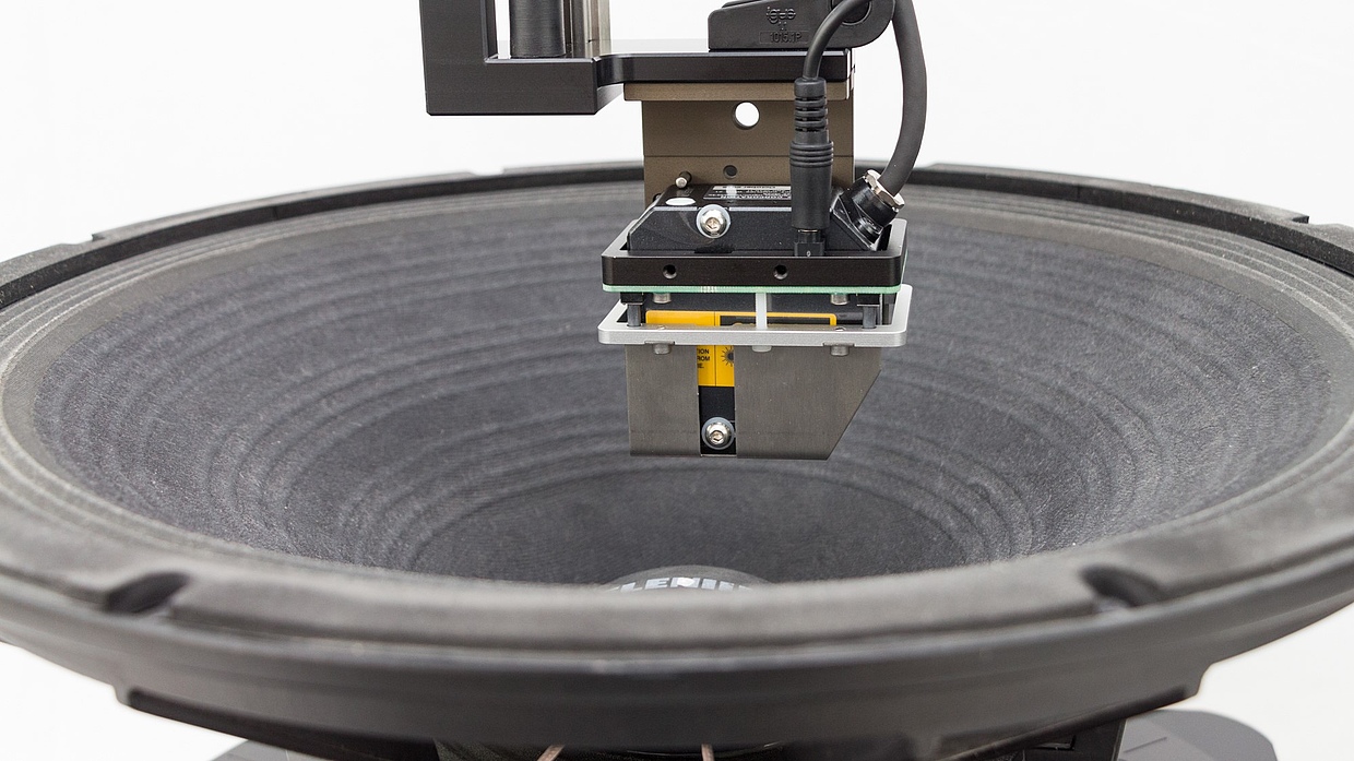 The Klippel R&D System comprises the hardware Klippel Analyzer (KA3), the project management software dB-Lab and many modules for all kinds of measurements. The system offers every-day acoustical tests, small and large signal parameter measurement (including T/S parameters), distortion measurements, accelerated life and power testing, simulation and auralization modules. It measures all kind of speakers, from micro-speakers to subwoofers as well as audio systems. Accessories like lasers, microphones, power amplifier and mounting stand complete the test setup. The Scanning Vibrometer System is an add-on, using the Klippel Analyzer (KA3) hardware, special software and accessories for cone vibration and radiation analysis. Other add-ons are offered for cone and spider testing (SPM) and speaker material measurement (MPM).