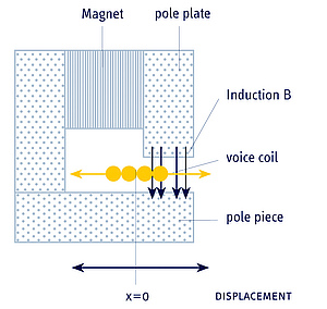 The maximal amplitude is determined automatically using the identified transducer parameters and general protection parameters describing the thermal and mechanical load. The identification of the model parameters is performed in real time using an adaptive system. It is based on the estimation of the back EMF from the voltage U(t) and current signal I(t) measured at the electrical terminals. The identified model locates the sources of the nonlinear distortion and their contribution to the radiated sound. The dynamic generation of a DC‐part in the displacement, amplitude compression and other nonlinear effects can be investigated in detail.