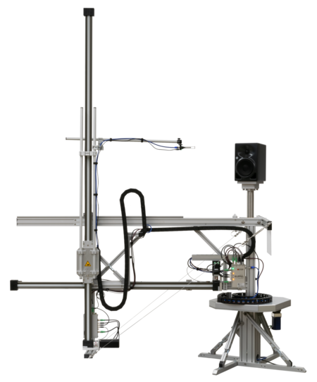 The Near-Field-Scanner 3D (NFS) offers a fully automated acoustic measurement of direct sound radiated from the source under test. The radiated sound is determined in any desired distance and angle in the 3D space outside the scanning surface. Directivity, sound power, SPL response and many more key figures are obtained for any kind of loudspeaker and audio system in near field applications (e.g. studio monitors, mobile devices) as well as far field applications (e.g. professional audio systems). Utilizing a minimum of measurement points, a comprehensive data set is generated containing the loudspeaker's high resolution, free field sound radiation in the near and far field.