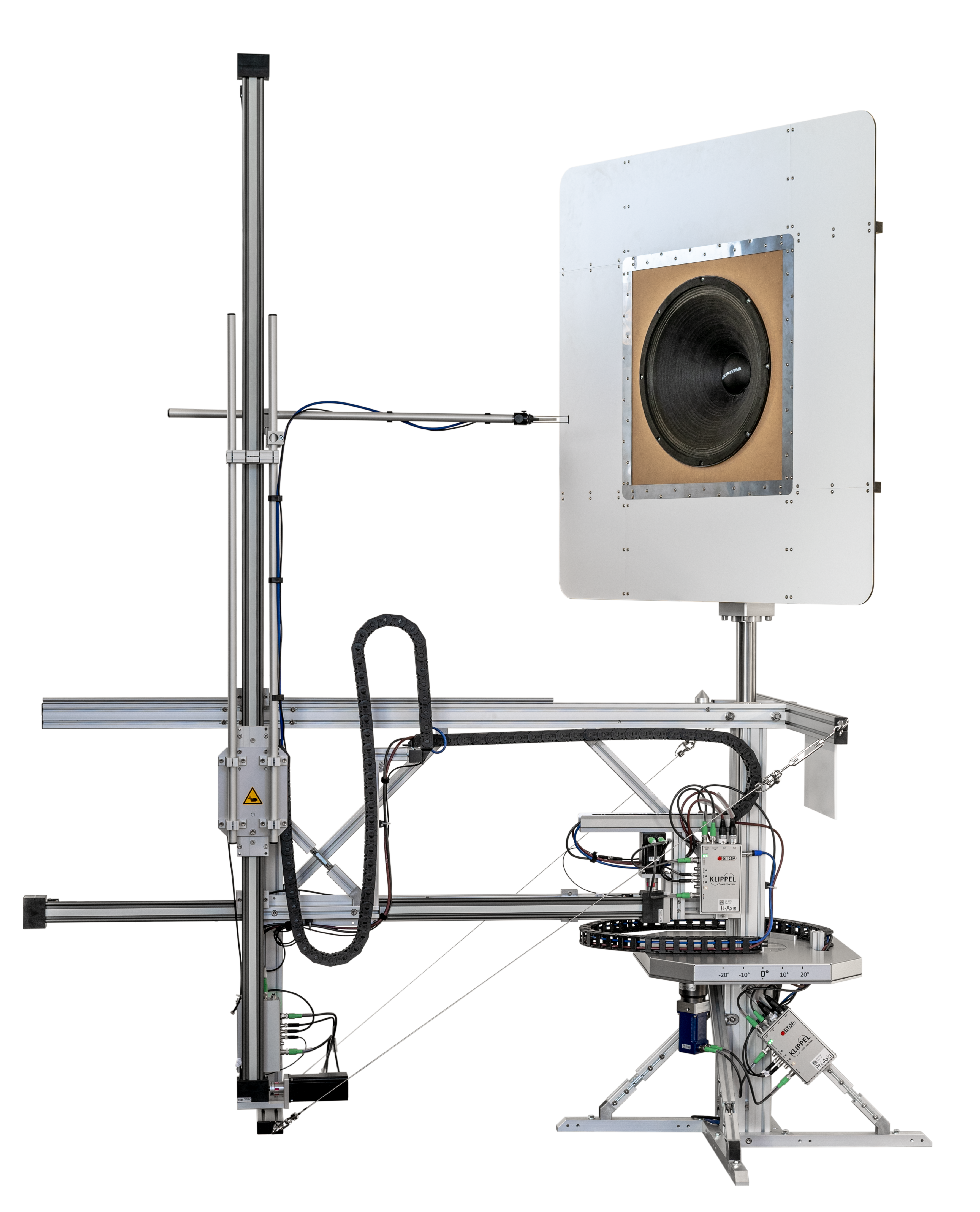 Due to non-moving loudspeaker, large Loudspeakers can be measured, being supported by a crane from ceiling.