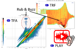 In addition, the TRF Voltage Stepping module can link and create additional operations automatically for a detailed root cause analysis of the Rub & Buzz defects. Critical measurements can be investigated using a Time-Frequency-Analysis (TFA) or can be analyzed perceptively with the Audio Player (PLAY).