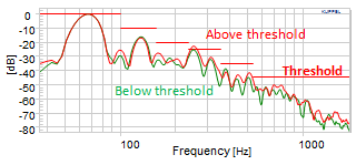 The TBM Module uses a transient sinusoidal burst to measure the peak SPL and harmonic distortion versus frequency and amplitude according to Standards ANSI/CEA-2010, ANSI/CEA-2034 and IEC 60268-21. If the distortion exceeds a user defined threshold, the input amplitude will be not increased to prevent a damage of the device under test. A second state variable (displacement, voltage, current) can be measured simultaneously. Acoustical measurements can be performed in a non-anechoic environment by compensating the room reflections by inverse filtering of the microphone signal.