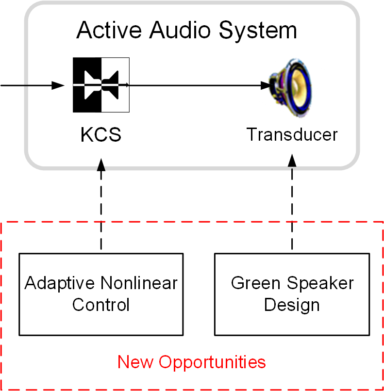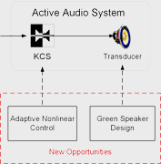 KLIPPEL Controlled Sound (KCS) is an adaptive nonlinear control software providing distortion reduction, voice coil stabilization, automatic alignment and protection from mechanical and thermal overload to loudspeakers, headphones, and other actuators. These software features give new opportunities in the design of the passive components (e.g., transducer, enclosure) for increasing efficiency and voltage sensitivity, which is the key for getting more acoustical output at higher quality from smaller speakers (Green Speaker Design).