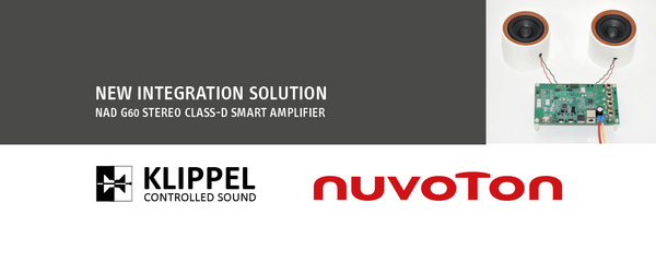 Our business partner, Nuvoton, will soon release the new NAU83G60. This stereo 2x30W smart amplifier boasts an integrated low latency Advanced Audio DSP that runs the KLIPPEL Controlled Sound (KCS) nonlinear adaptive speaker control algorithm. KCS provides highly accurate mechanical and thermal speaker protection while the nonlinear control system reduces harmonic and intermodulation distortion generated by speaker nonlinearities. Thanks to active DC compensation, the voice coil can be operated at its ideal rest position for maximum bass output. NAU83G60 voltage and current sensing enables continuous identification of speaker parameters. Hence, parameter variations caused by aging, production variances or climate changes can be compensated.